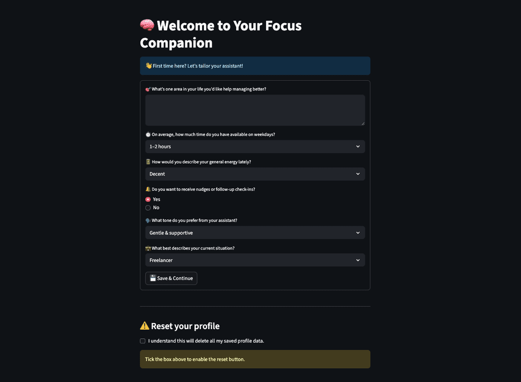 An AI-powered daily check-in tool for overwhelmed minds. Designed to adapt to your energy, mood, and schedule — helping you feel more in control, not more productive. Built with Streamlit + GPT.